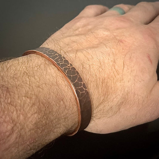 Hammered Copper Bracelet, 3/8 inch wide. Hand Forged in Montana. Anti inflammatory , rugged, Made in the USA.