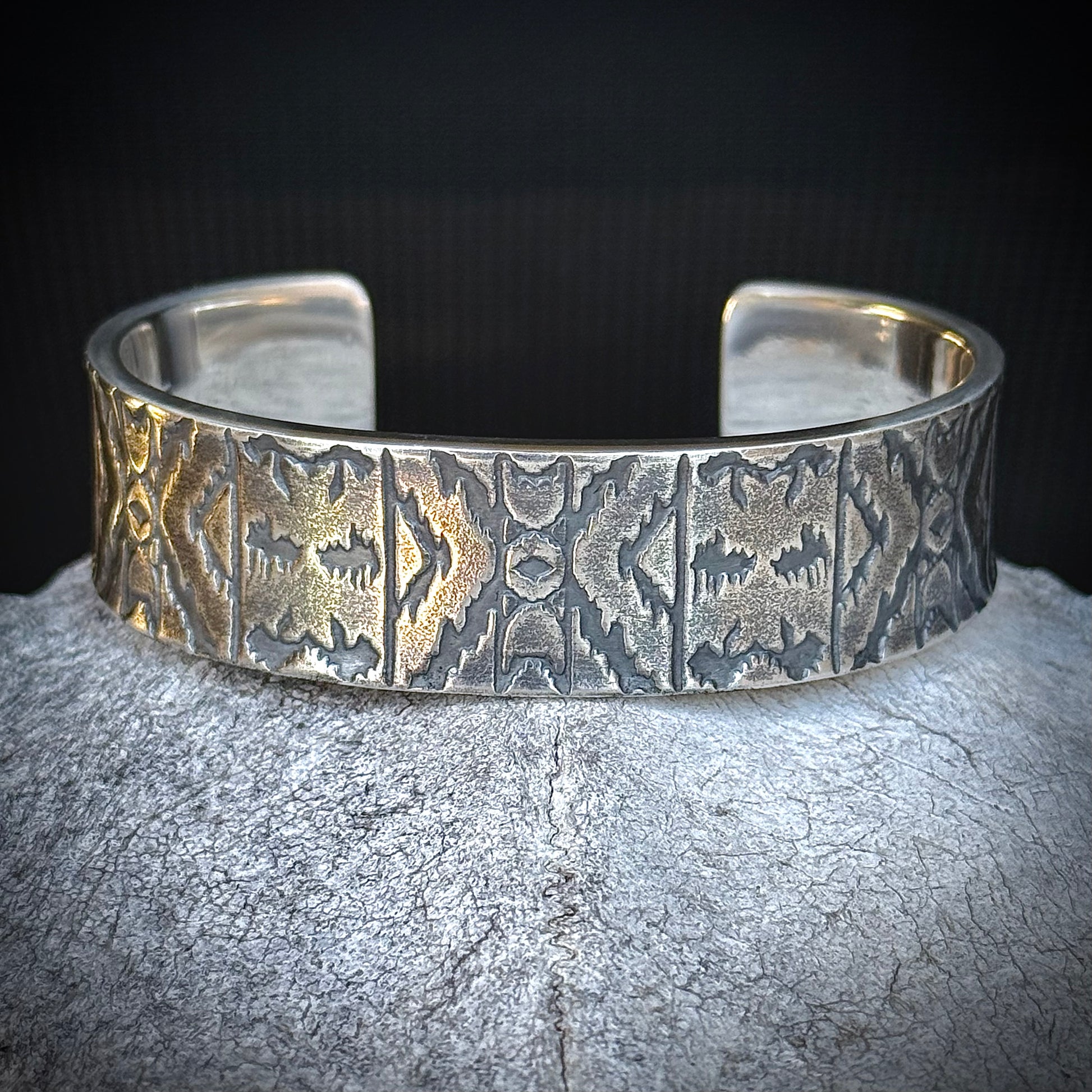 100% Pure Silver Cuff Bracelet. southwest pattern. 5/8 wide. Handmade in Montana. Rugged Western bracelet. .999 Fine silver. New Design!
