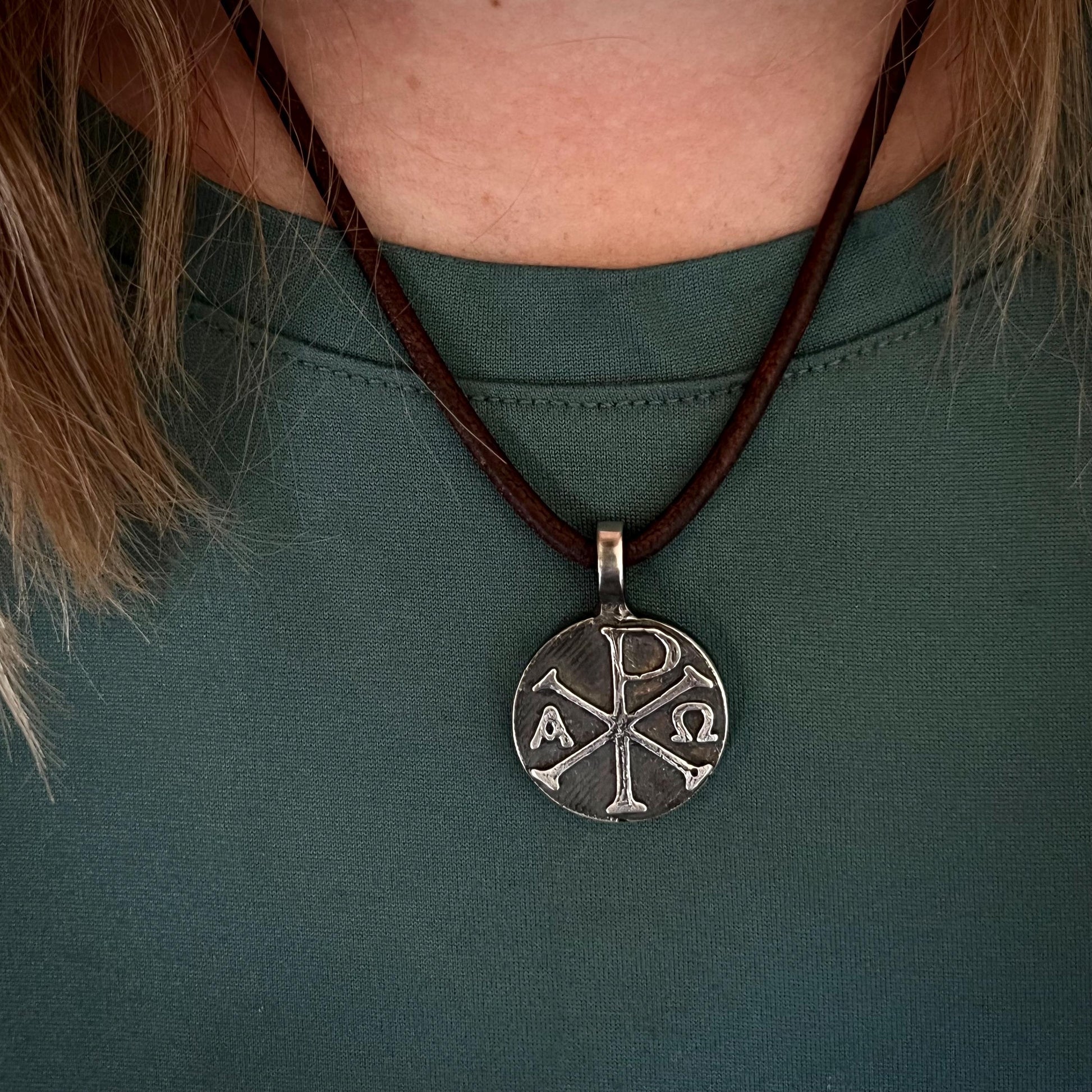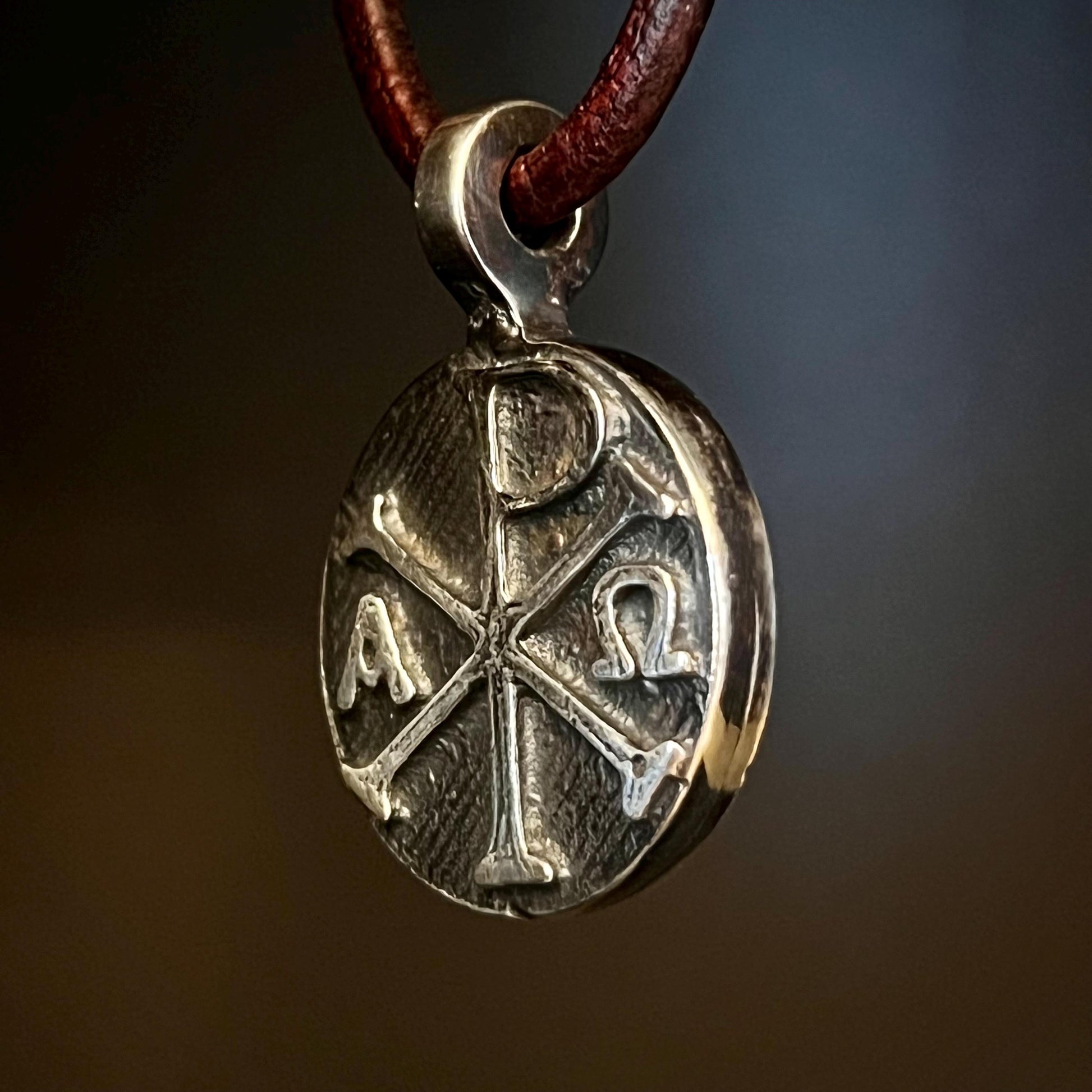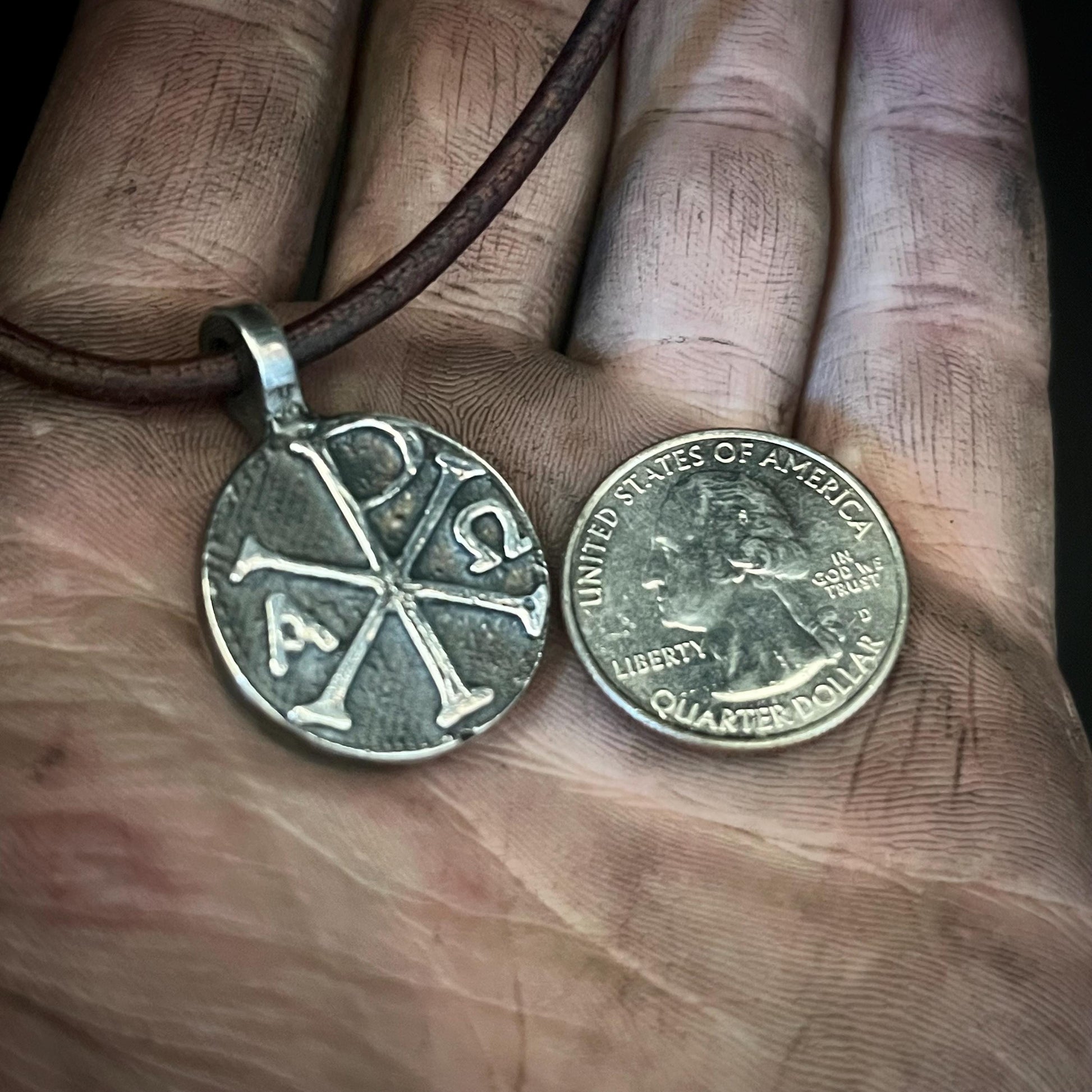 999+ Pure Silver Chi Rho Pendant. Made in America. hand forged in Montana.