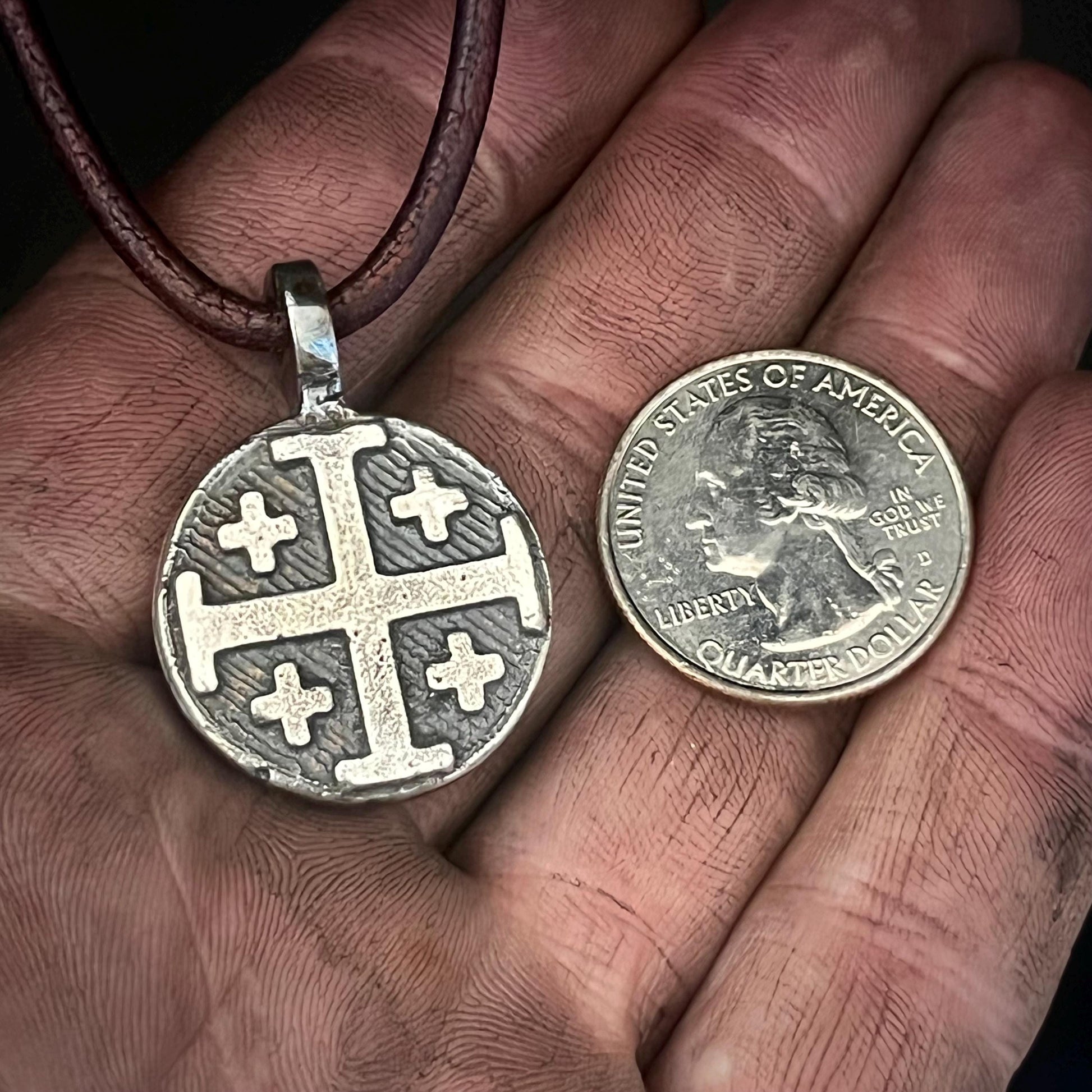 999+ Pure Silver Jerusalem Cross / Crusader Cross Pendant. Made in America. hand forged in Montana.